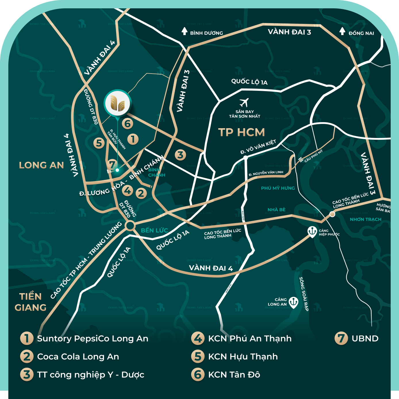Vành đai 3, Vành đai 4, cao tốc HCM - Trung Lương, cao tốc Bến Lức - Long Thành, di chuyển về sân bay Long Thành và các tỉnh miền Tây chỉ khoảng 30-40 phút.